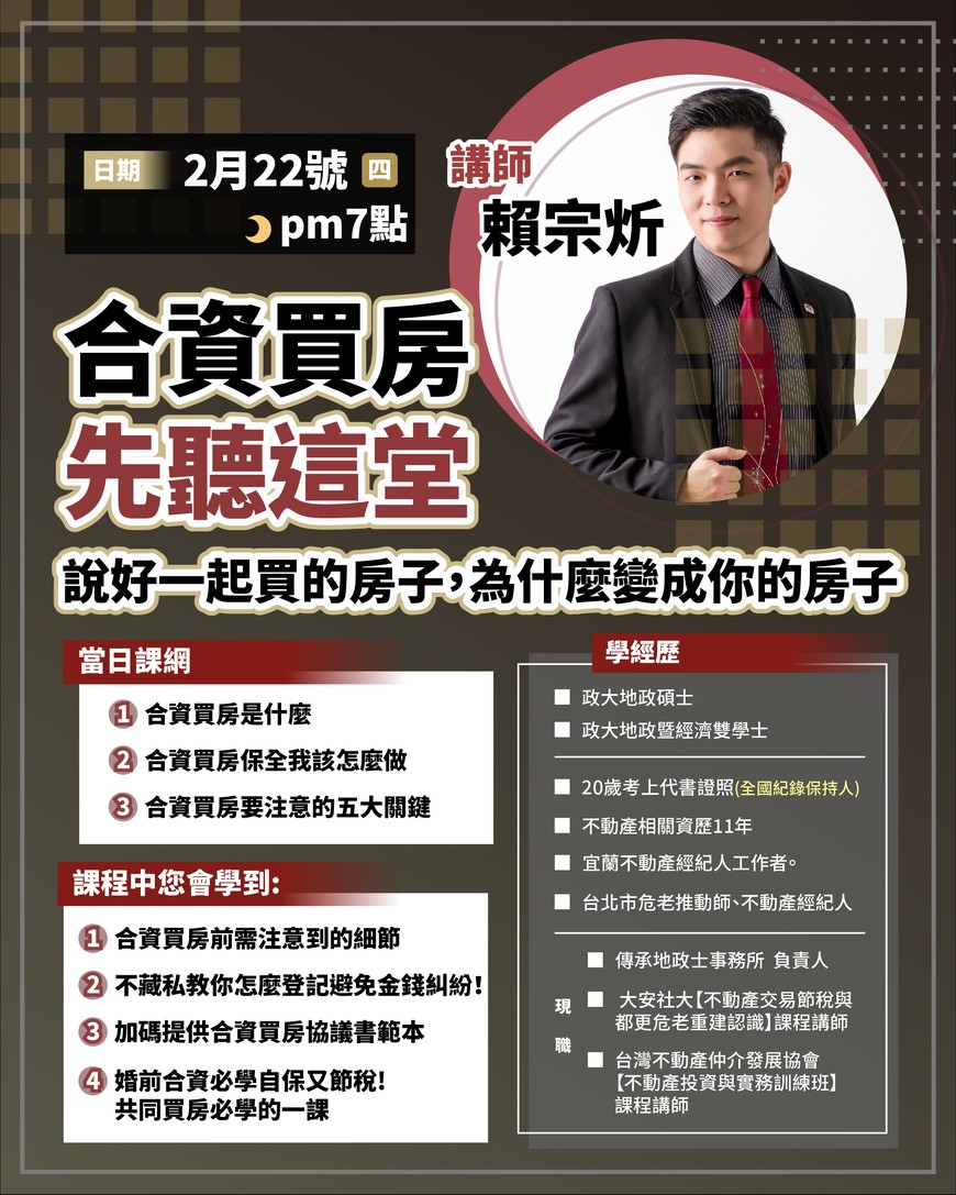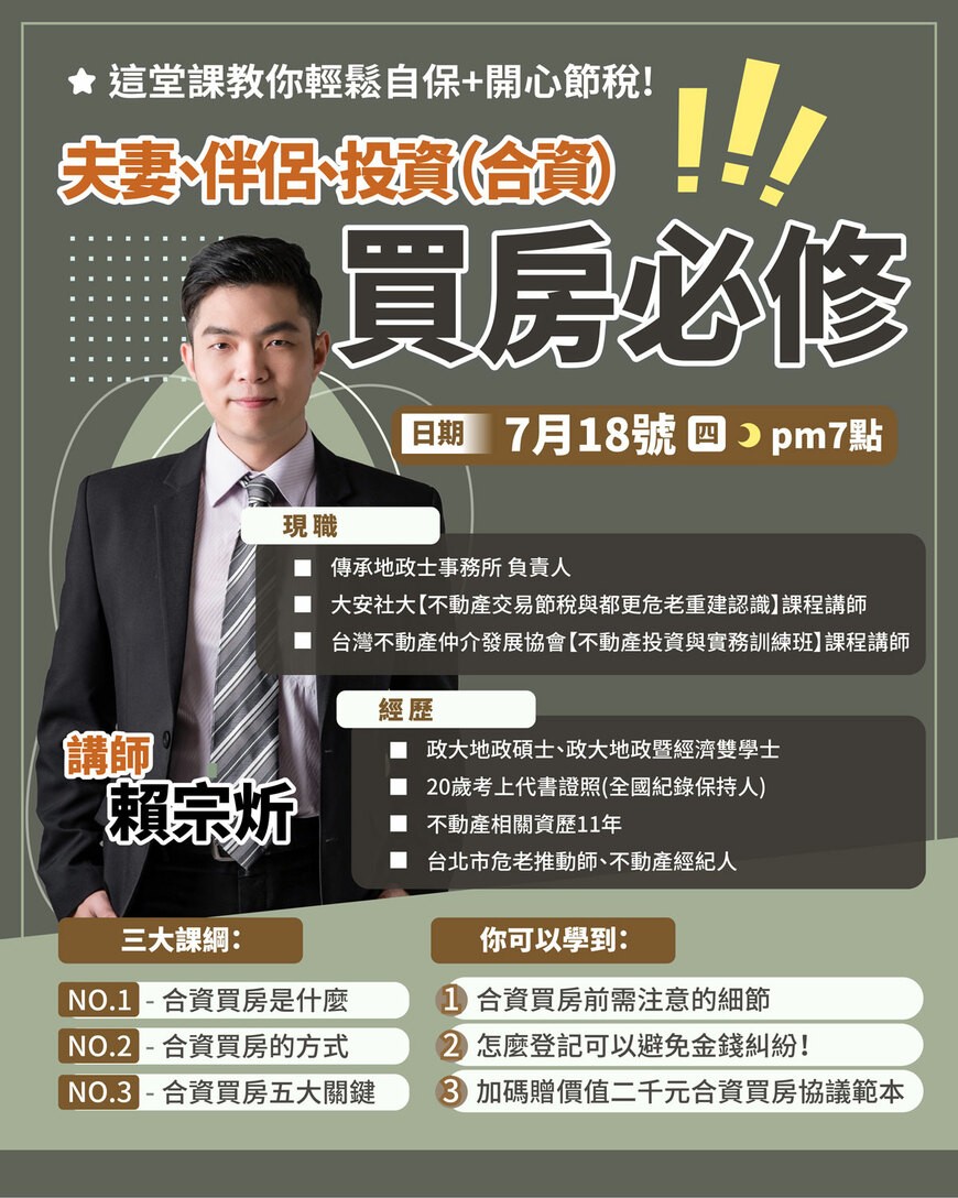 題目: 夫妻、伴侶、投資(合資)買房必修